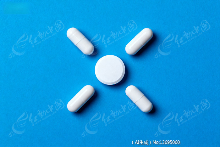 蓝色背景上的白色药片胶囊