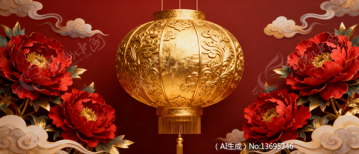 金色灯笼红色牡丹喜庆春节背景