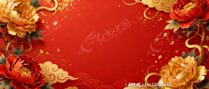 红色喜庆金色红色牡丹春节背景
