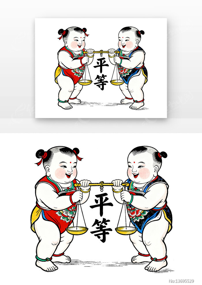 年画娃娃社会主义核心价值观平等图片下载_红动中国