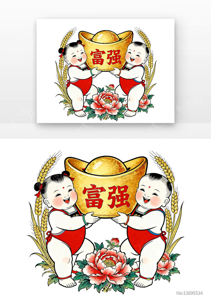 年画娃娃社会主义核心价值观富强图片下载_红动中国