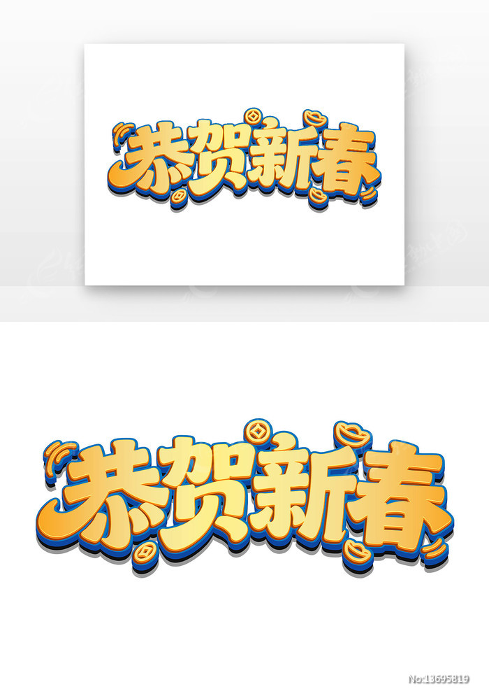 恭贺新春创意卡通立体艺术字图片下载_红动中国