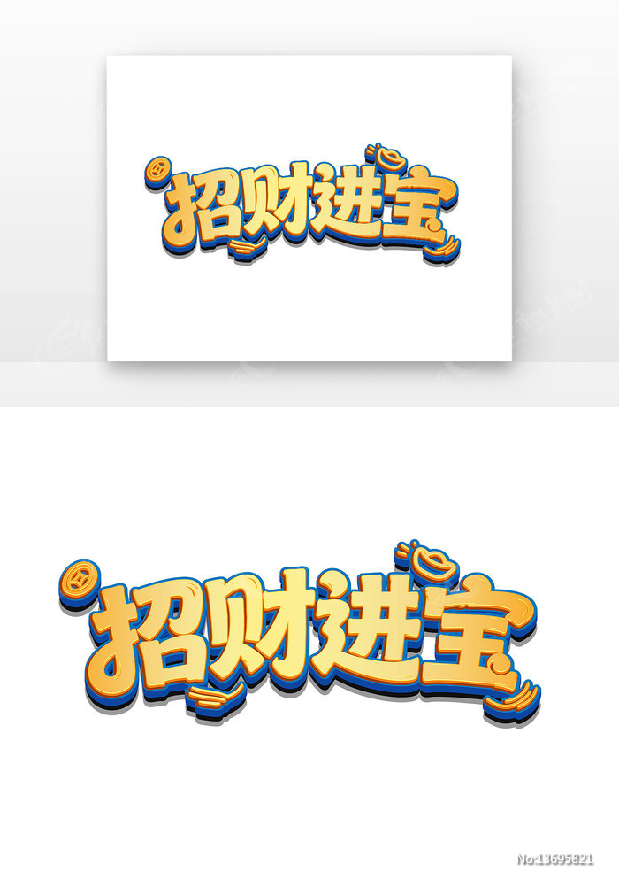 吉祥词招财进宝创意卡通立体艺术字图片下载_红动中国