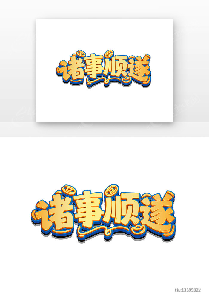 吉祥词诸事顺遂创意卡通立体艺术字图片下载_红动中国