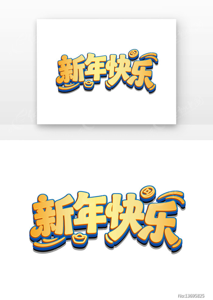 新年快乐创意卡通立体艺术字图片下载_红动中国