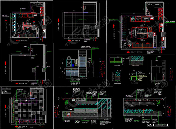 全套馒头店装饰水电CAD图纸图片下载_红动中国