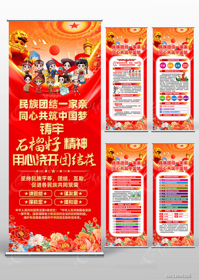 红色铸牢中华民族共同体意识民族团结展架图片下载_红动中国