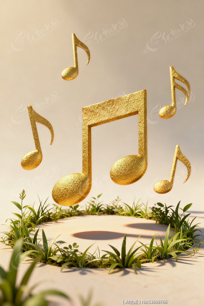 金色音乐符号草地创意海报简约素材图片背景