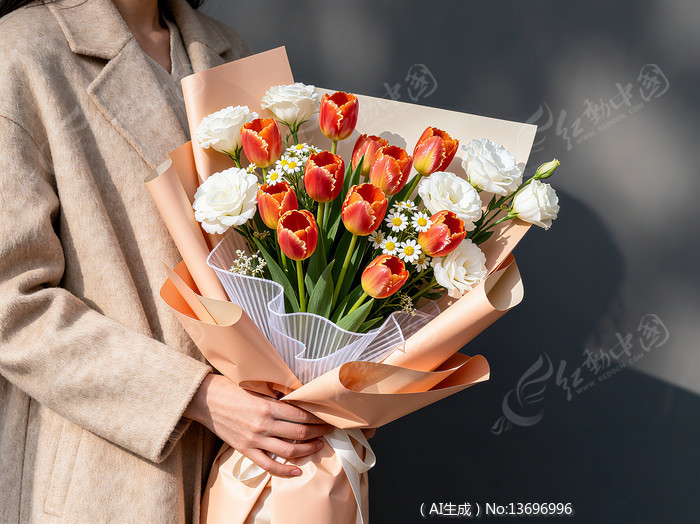 手捧一束鲜花