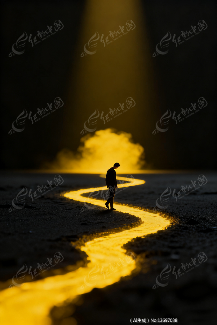 梦幻人物灯光场景空间素材背景金色黑色海报