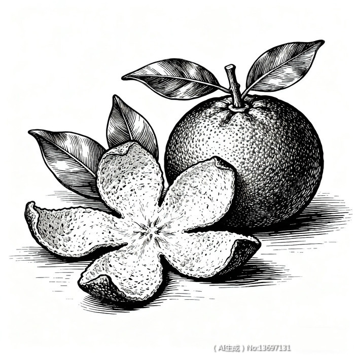青柑与陈皮主题的线稿插画