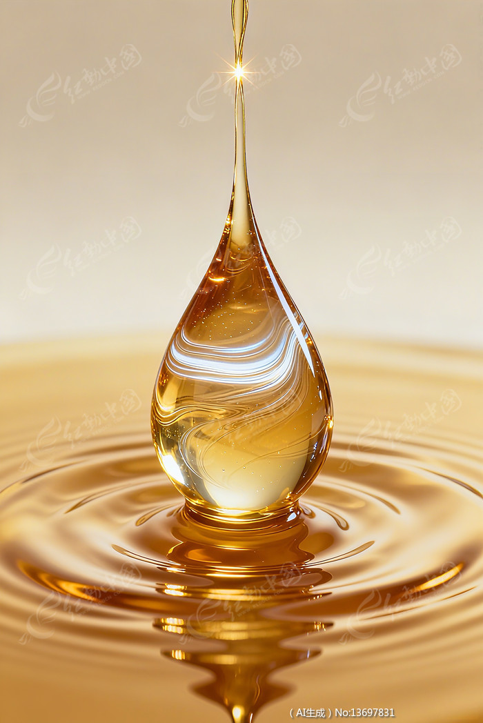 金黄色的油滴与油液涟漪
