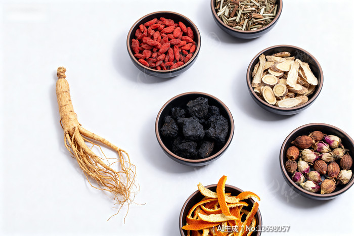 中药材组合展示根茎果实干果多样