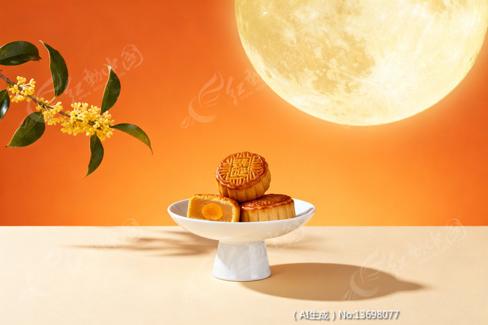中秋月饼与圆月金中秋节背景