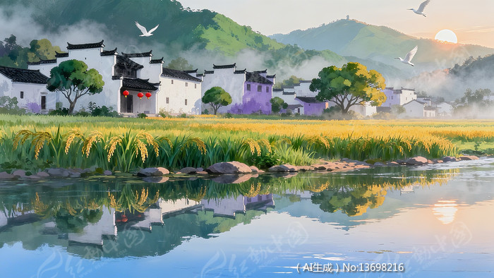 徽派古建筑村落与稻田