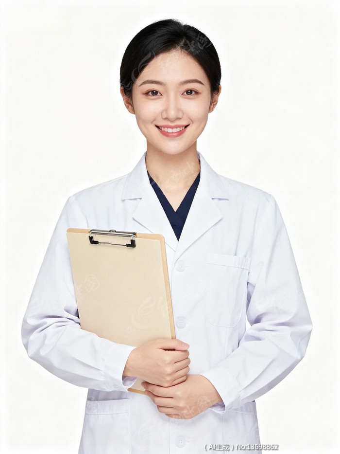 医生手持文件夹身穿白大褂微笑