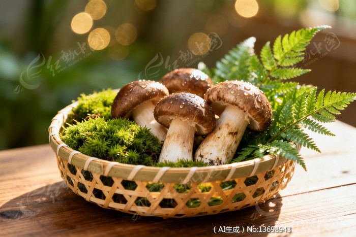 阳光下篮子里的蘑菇