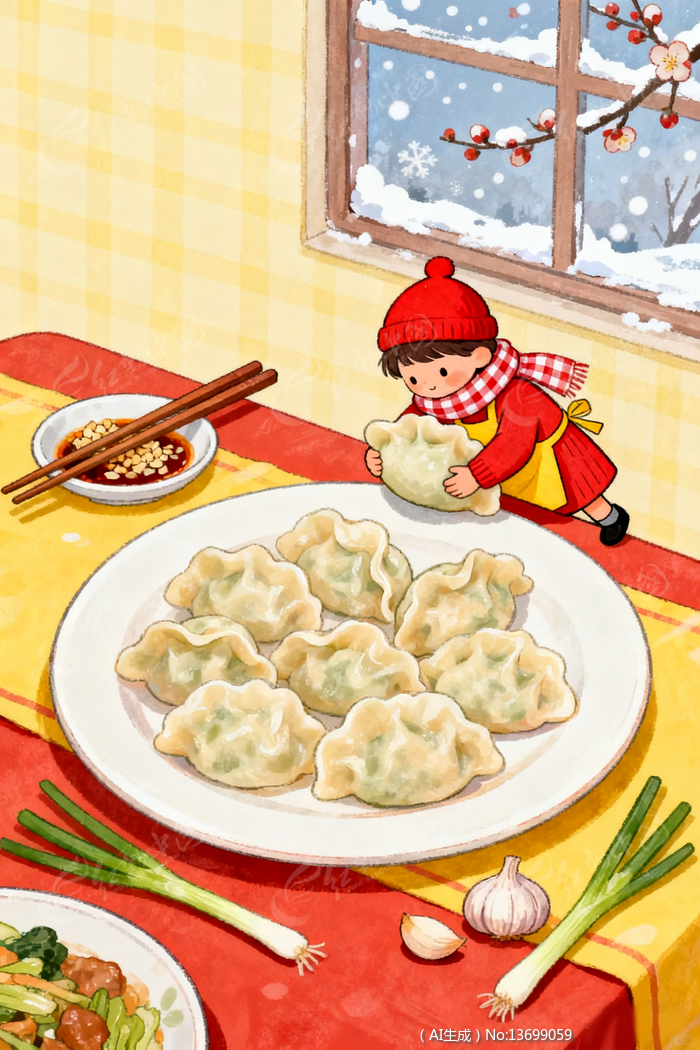 冬至卡通插画风创意水饺海报素材背景图片
