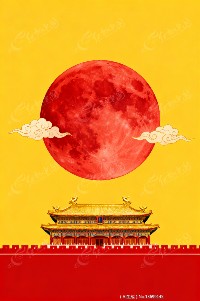 中国传统古代建筑宫殿插画海报中秋素材背景
