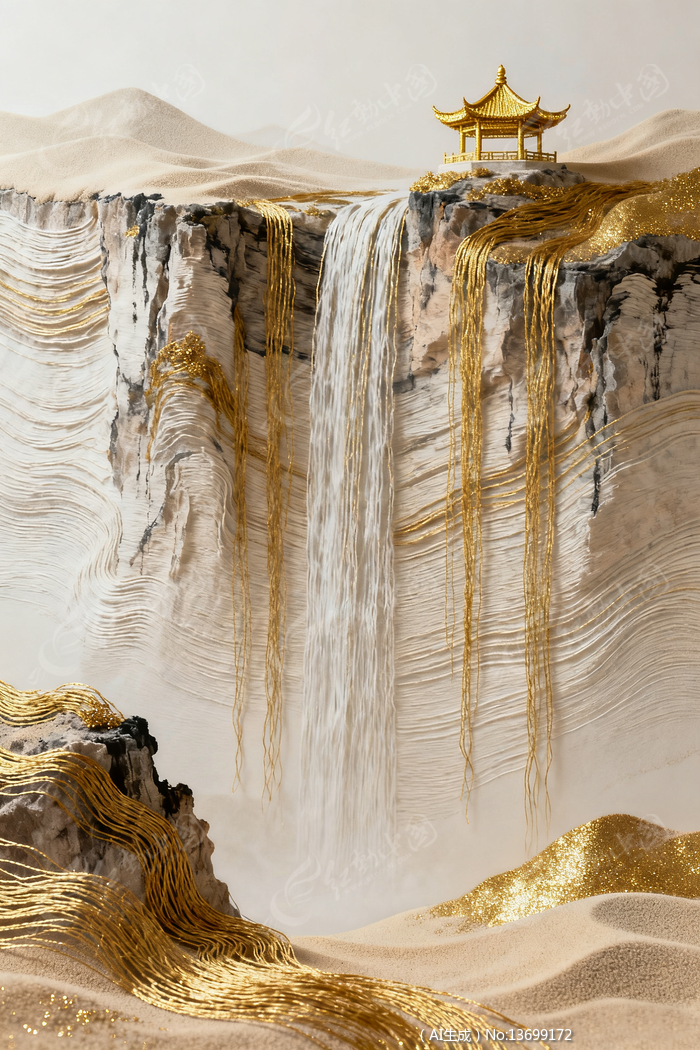 中国风古建筑纹理山水金箔线条艺术背景素材