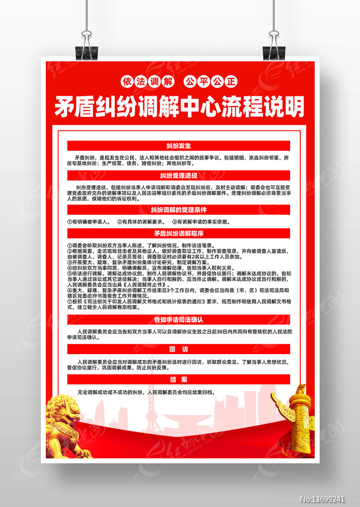 社会矛盾纠纷调解中心流程说明海报图片下载_红动中国