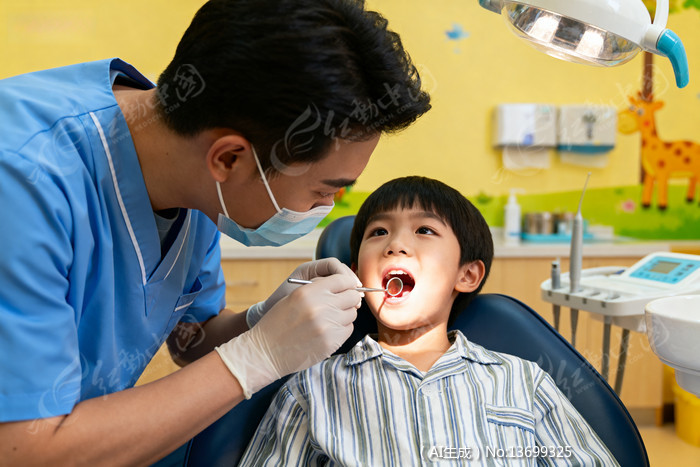 牙医为儿童检查口腔