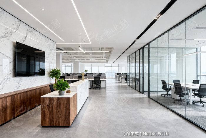 现代简约风格办公室宽敞明亮配备玻璃隔断