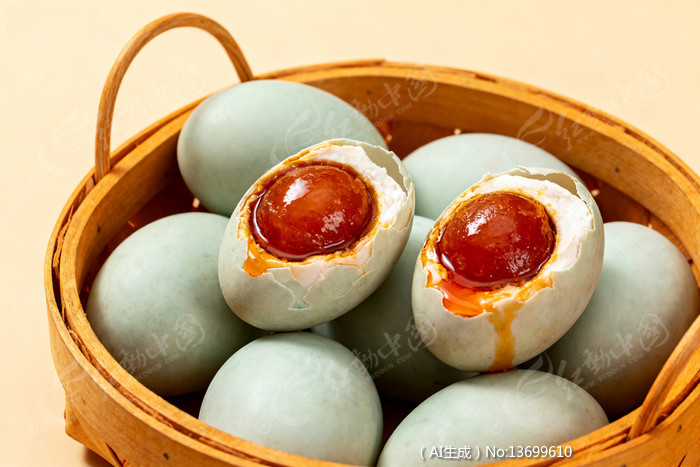 咸鸭蛋装竹篮蛋黄流油诱人