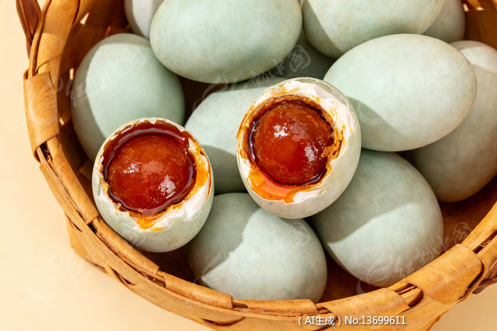咸鸭蛋盛放在竹篮中蛋黄流油