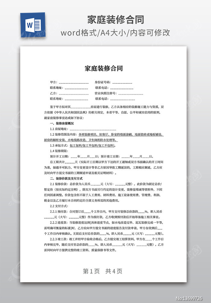 家庭装修合同下载_红动中国