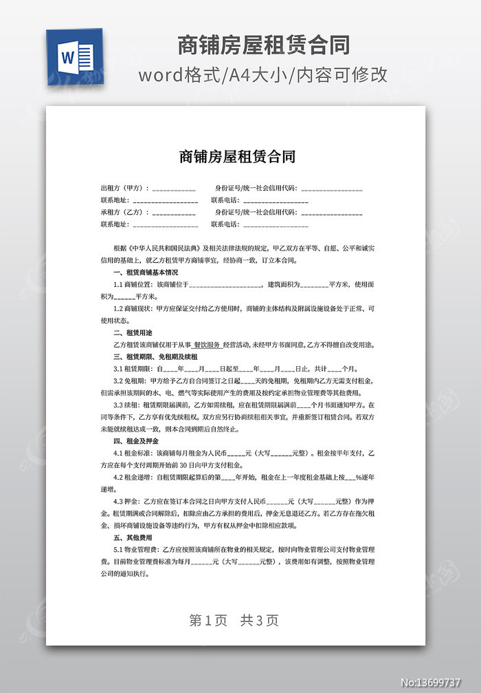 商铺房屋租赁合同下载_红动中国