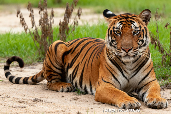 趴卧的老虎它有着橙黄色的毛发和黑色的条纹