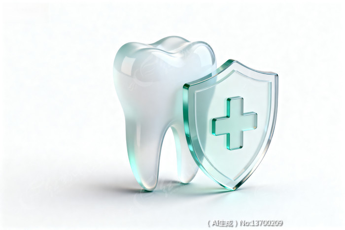 透明牙齿与盾牌象征保护与健康