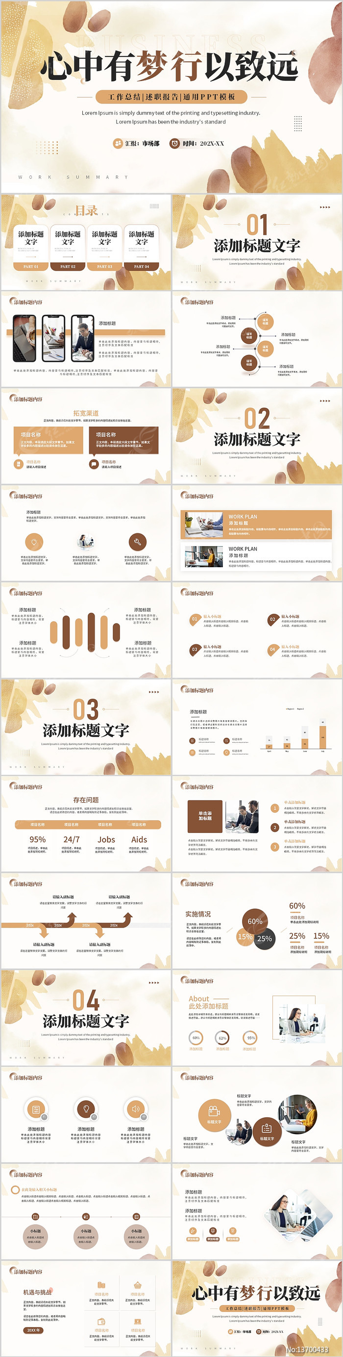褐色莫兰迪风工作总结述职报告通用PPT下载_红动中国