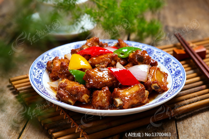 糖醋排骨配彩椒洋葱中式风味佳肴
