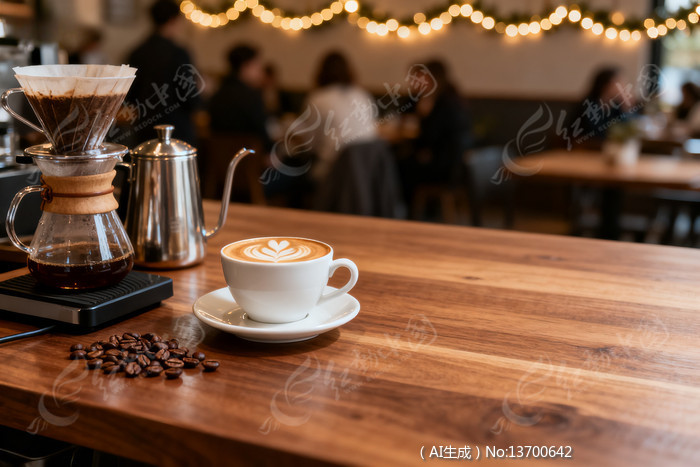 手冲咖啡与拿铁艺术木质桌面的温馨氛围