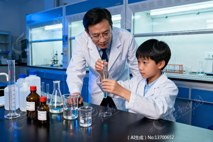 实验室中老师指导小学生做实验