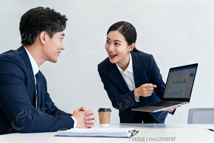商务会谈男女交流展示数据图表