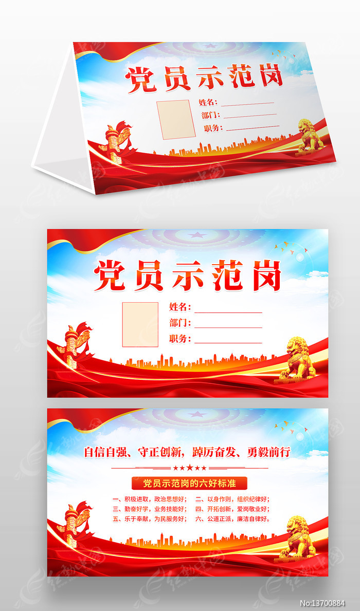 党员示范岗先锋岗桌牌台卡展示台签桌卡图片下载_红动中国
