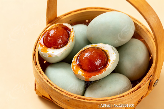 青皮咸鸭蛋装篮蛋白流油蛋黄诱人