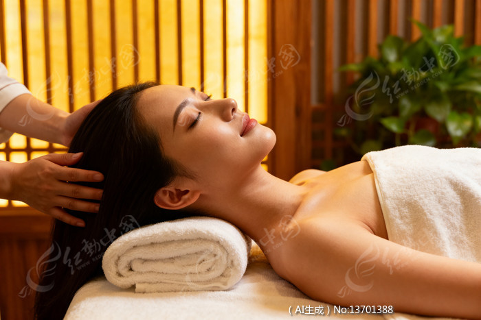 女子享受头部按摩神情放松