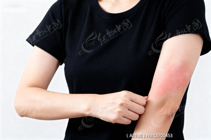 女性手臂红肿抓挠特写