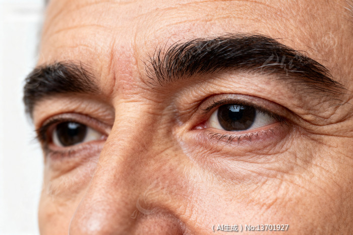 男性眼部特写眉毛浓密皮肤有皱纹