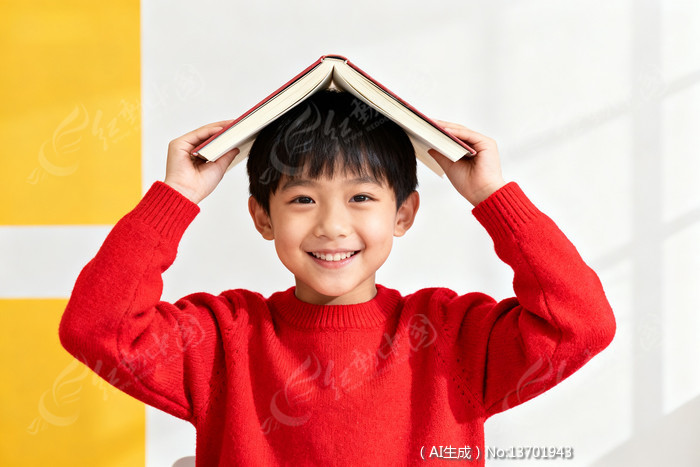 男孩头顶书本比屋顶