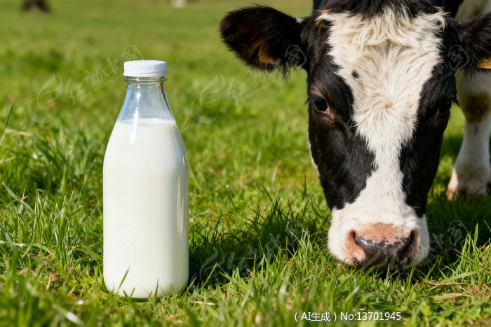 奶牛与牛奶瓶的田园风光