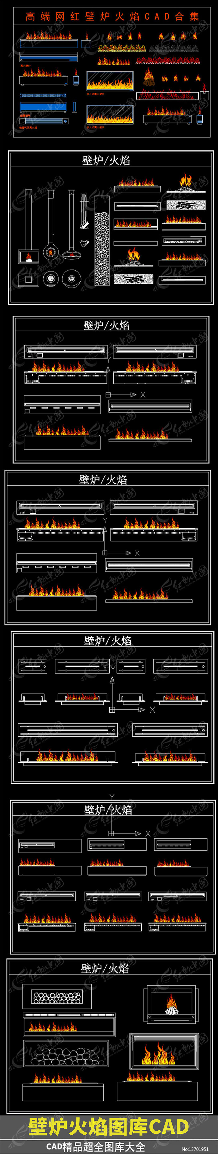 高端网红壁炉火焰CAD合集图片下载_红动中国