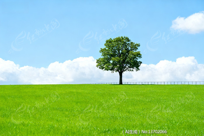 绿野孤树蓝天白云