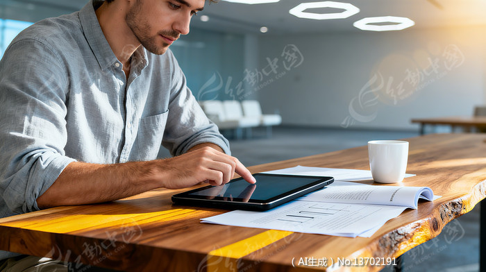 职场男士正在使用平板电脑
