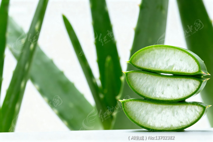 芦荟切片特写绿色植物背景