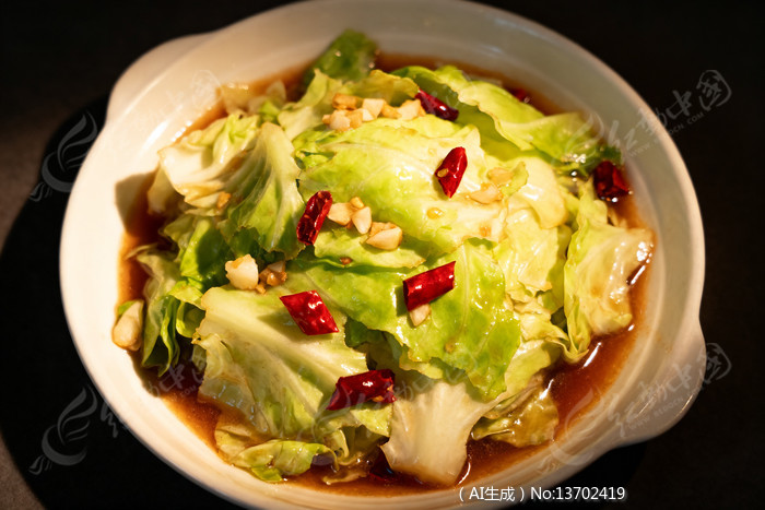 凉拌生菜红椒蒜末点缀